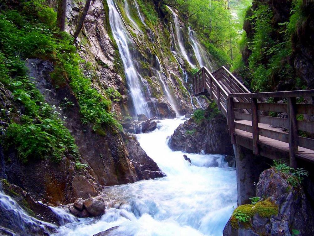 Über Jahrtausende hinweg hat der Wimbach sich in den harten Fels gegraben, bis diese tiefe Schlucht entstanden ist. An vielen Stellen stürzt das Wasser von den Wänden und fängt sich in den vom mitgeführten Gestein ausgehölten "Gumpen". Der Besucher kann dieses Spektakel der Natur vom imposant angelegten Holzsteg aus betrachten.