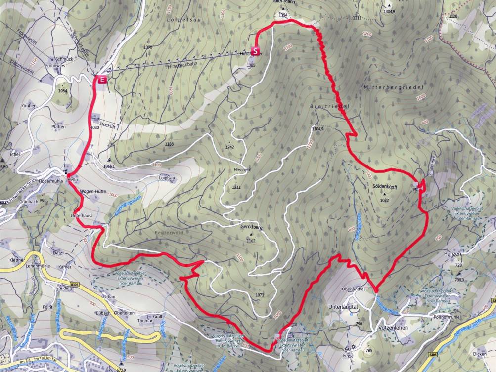 Vom Parkplatz Hinterbrand geht es los in Richtung Brennerhütte, wo der Max begrüßt werden will, weiter zur PriesbergAlm. Danach über den unterer Hirschenlauf mit einem krassen Anstieg zur GotzenAlm.
